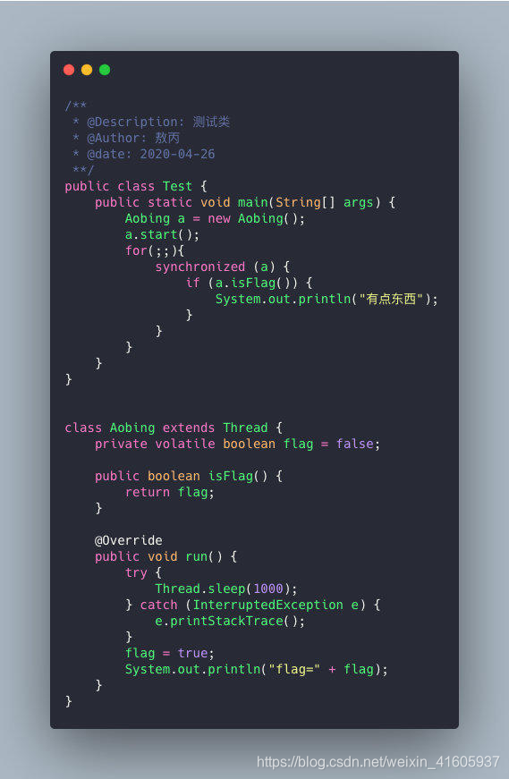 如果一个操作执行的结果需要对另一个操作可见,那么这两个操作之间必须存在happens-before关系。volatile域规则:对一个volatile域的写操作,happens-before于任意线程后续对这个volatile域的读。如果现在我的变了falg变成了false,那么后面的那个操作,一定要知道我变了。聊了这么多,我们要知道Volatile是没办法保证原子性的,一定要保证原子性,可以使用其他方法。