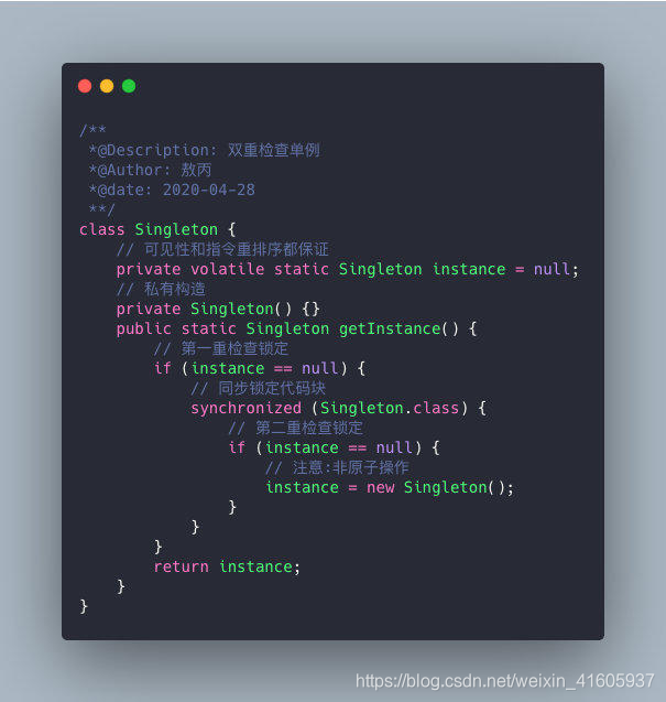 因为可见性,线程A在自己的内存初始化了对象,还没来得及写回主内存,B线程也这么做了,那就创建了多个对象,不是真正意义上的单例了。